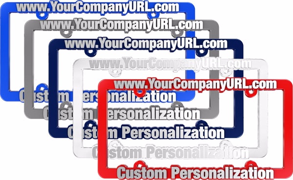The frames are available in black, red, blue, white, navy, and gray plastic with chrome imprint. These durable frames really help your brand stand out on a vehicle!